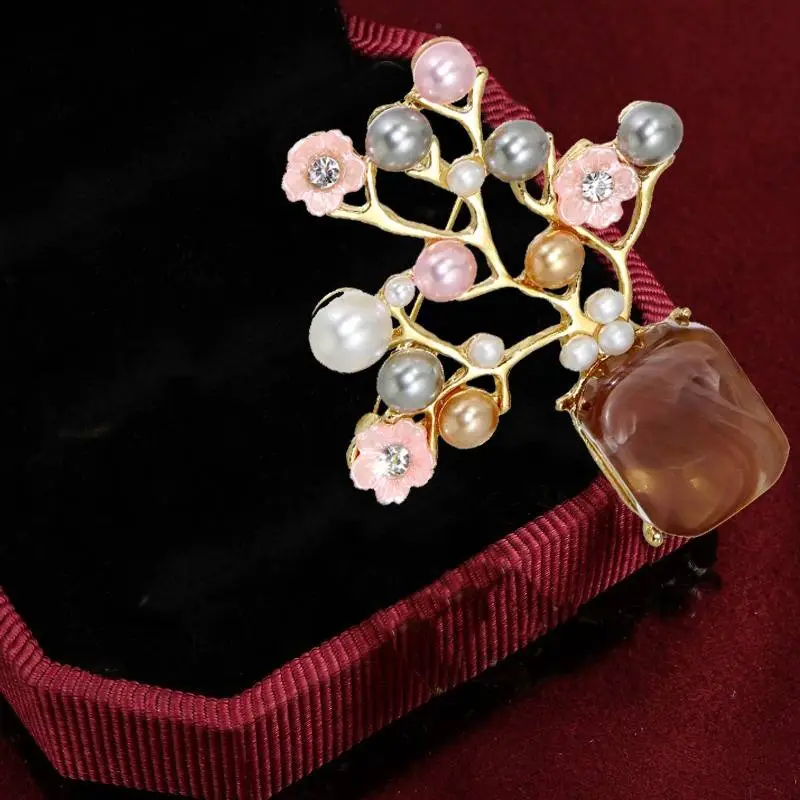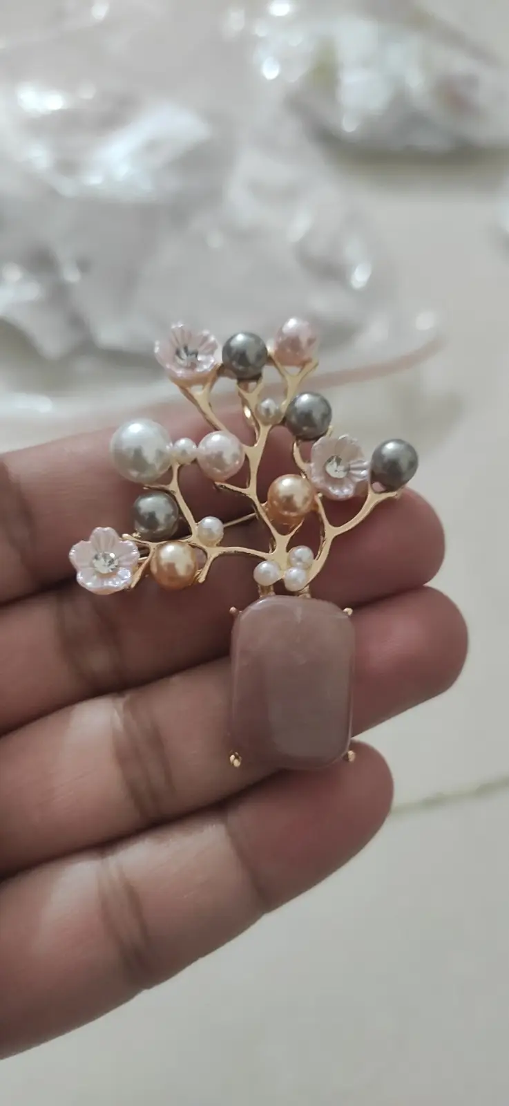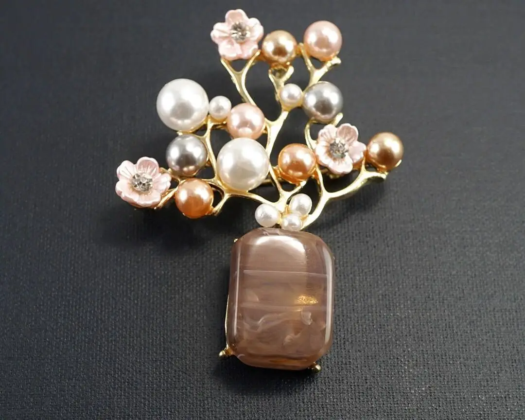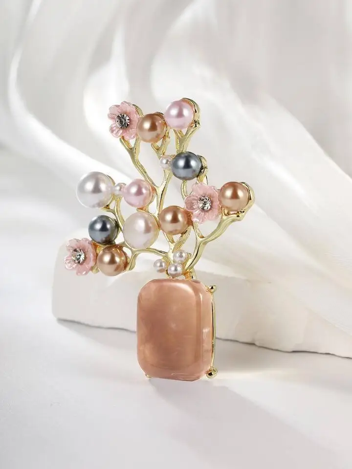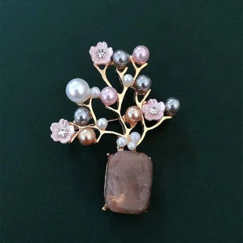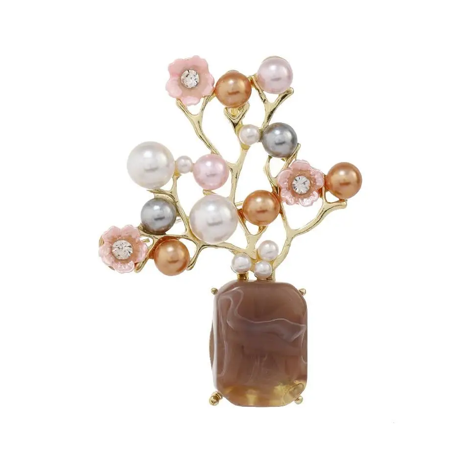 🌳 Unique Tree Design – Elegant floral tree brooch with pastel pearls & crystals.