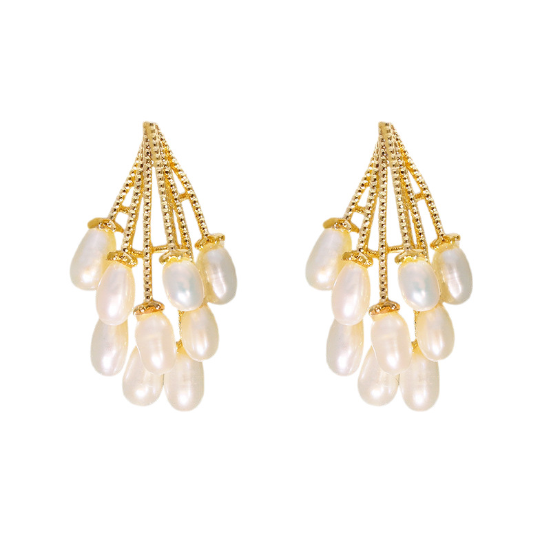 1 Pair of Pin Tassel Baroque Pearl Stud Earrings